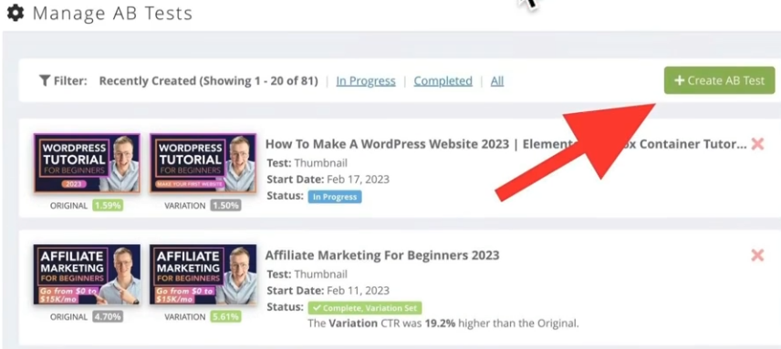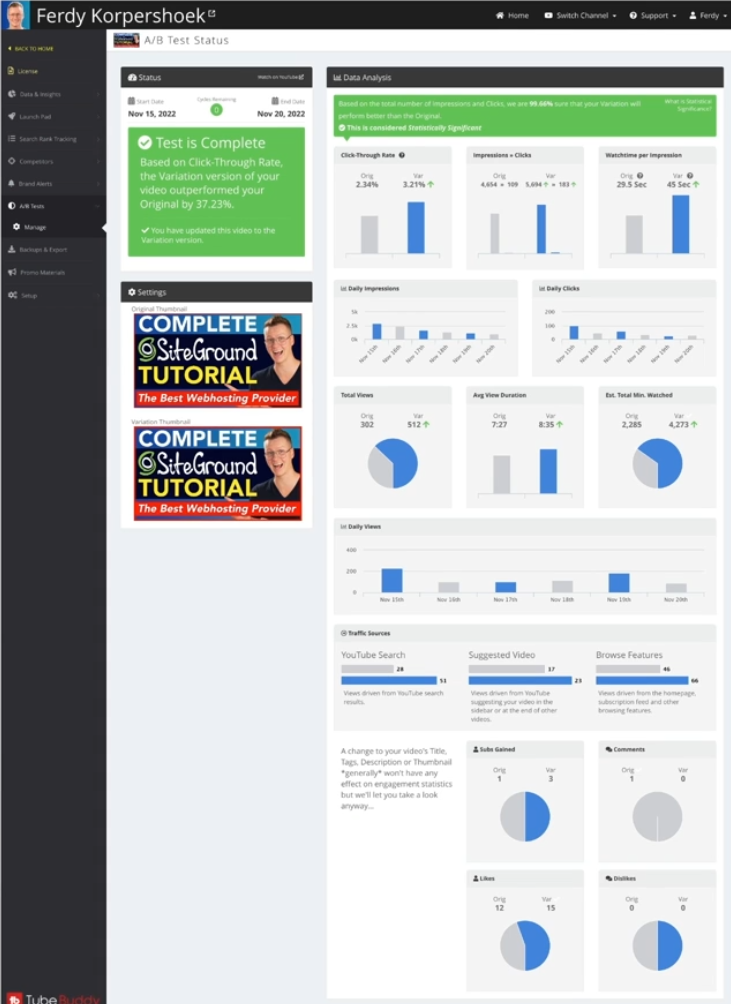 Now you can start doing your split tests. Go to your Tubebuddy dashboard and click on A/B tests