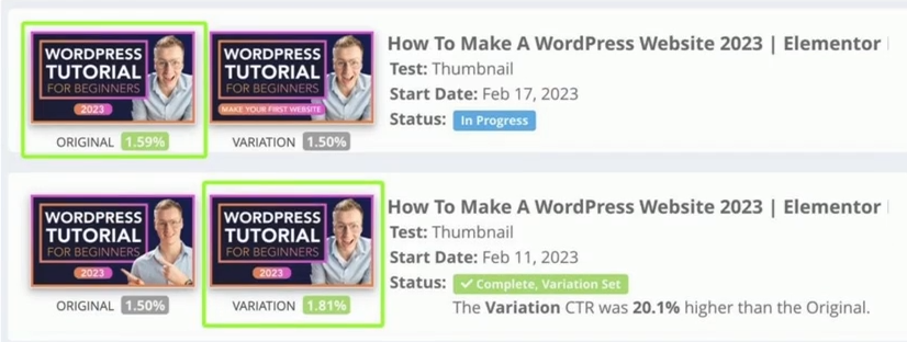 When those two are better than the original thumbnail, I have a winning thumbnail. Why?