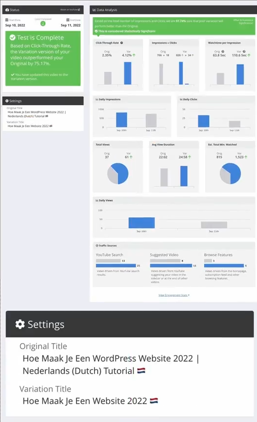 Dutch Tutorial” to “How To Make A Website 2022” Increased The Click Through Rate