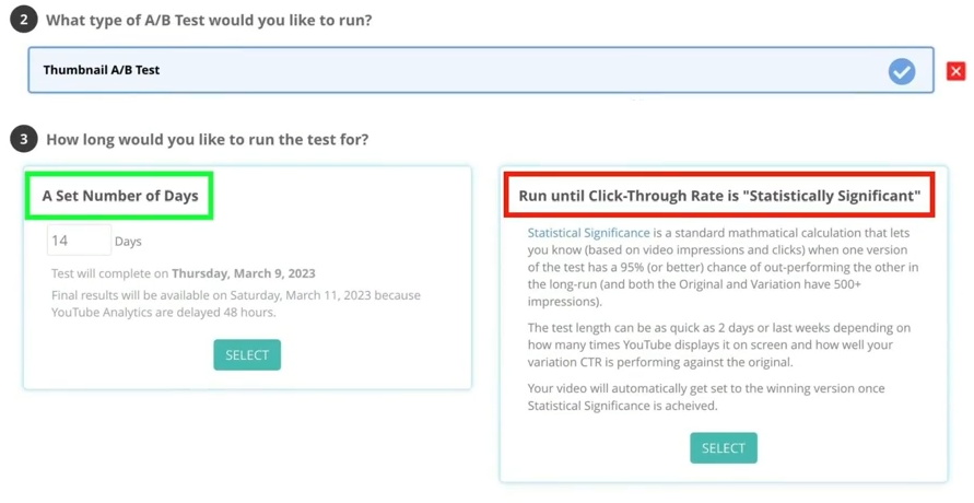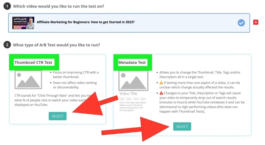 A/B Split testing is the process of selecting two different thumbnails and letting